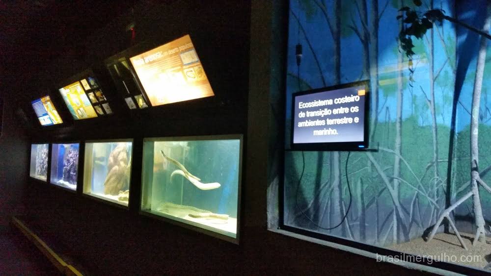 É possível ver de perto peixes como o mero, palhaço, piranhas, bem como, tubarões lixa, arraias, moreias, jacarés, pinguins de Magalhães, dentre outros.
