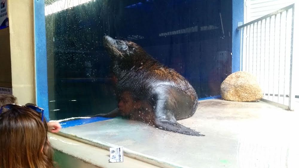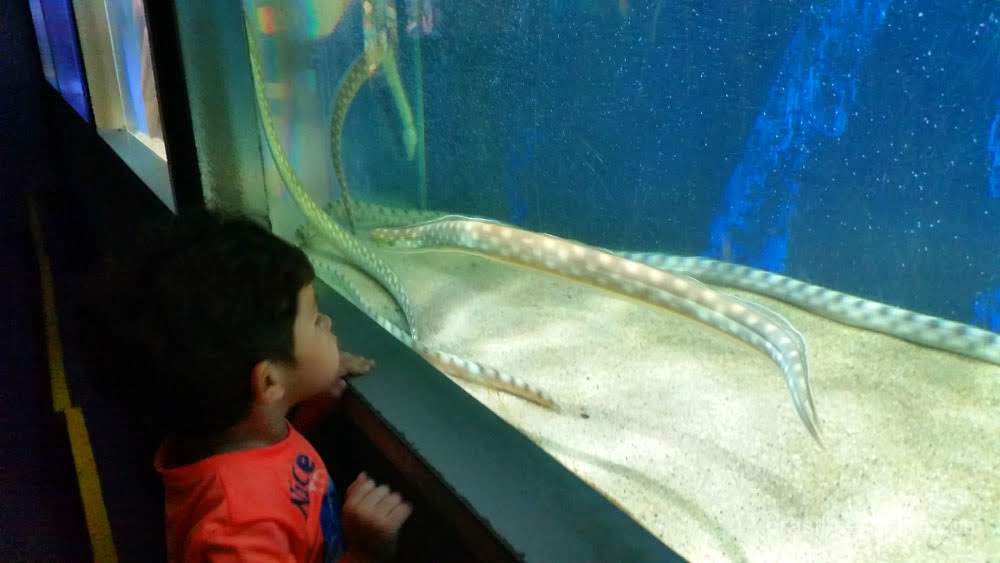 O espaço é grande e as crianças normalmente ficam encantadas ao ver os animais nadando.