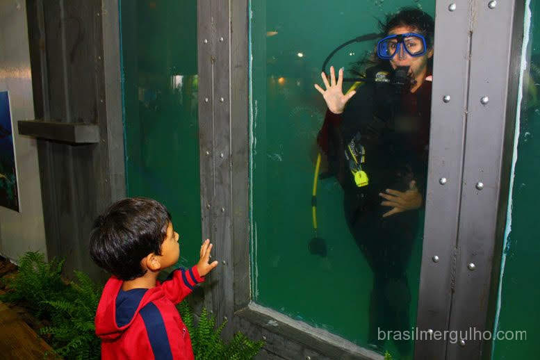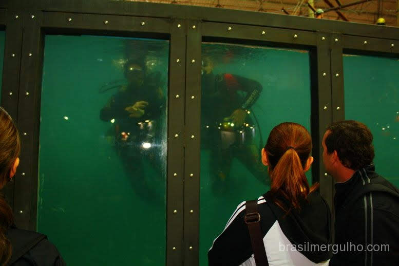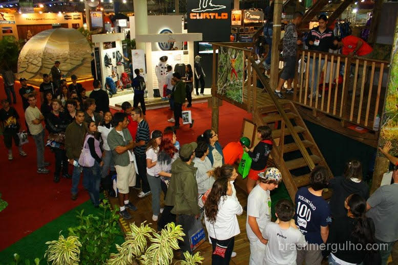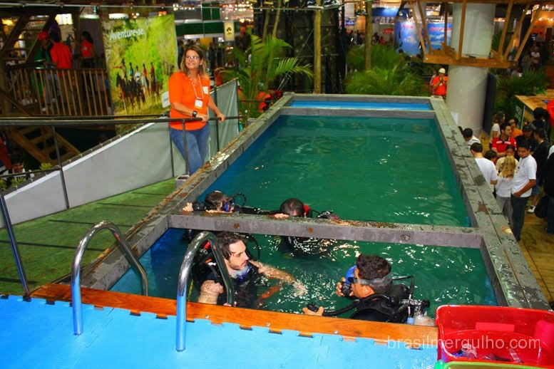 Um detalhe nos chamou atenção. Nos stands das Secretaria de Turismo de diversos Estados brasileiros, continha fotos de mergulho, associando o esporte ao estado.