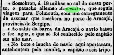 Notas: Saiu de Aracajú com destino a Falmouth. Morreram sete tripulantes.