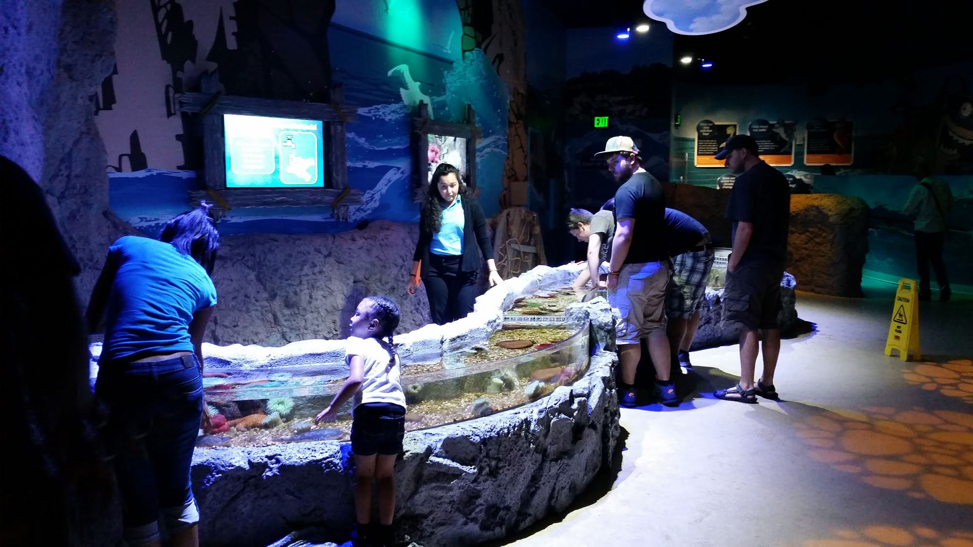 Ao longo do passeio o visitante passa por alguns aquários onde ocorrem interações com os animais, sob a orientação de biólogos especialistas.