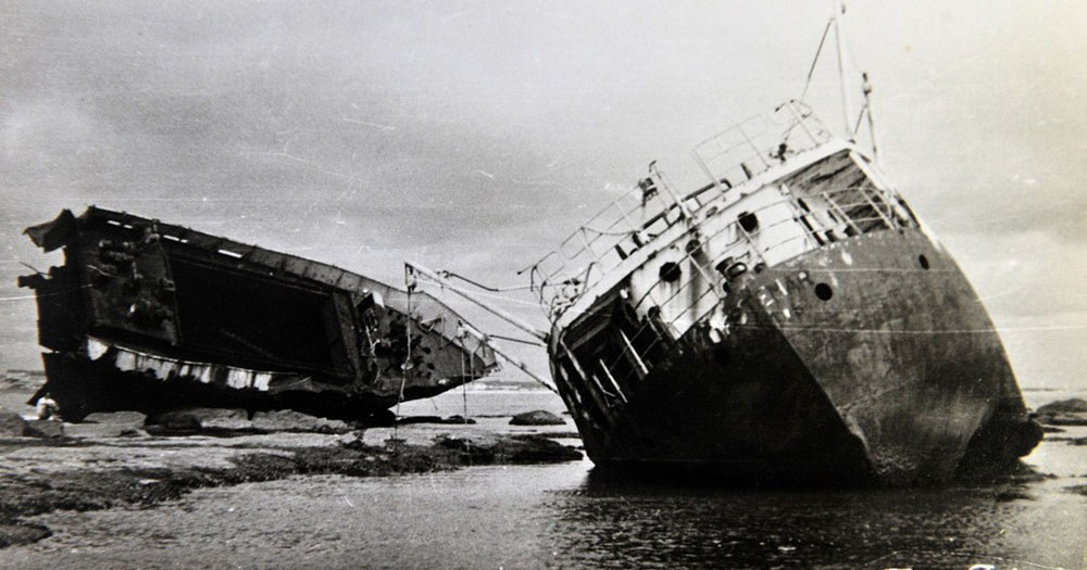 Infelizmente não sobrou nada do naufrágio devido a força do mar contra as pedras naquela localidade, como mostra a imagem abaixo captada em 2021: