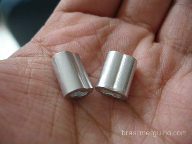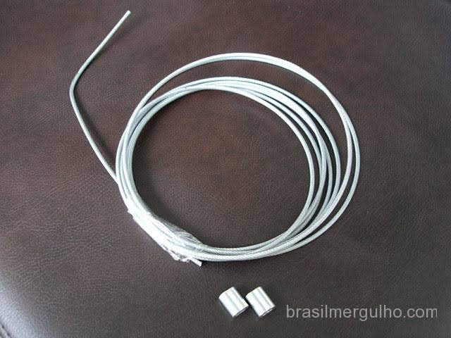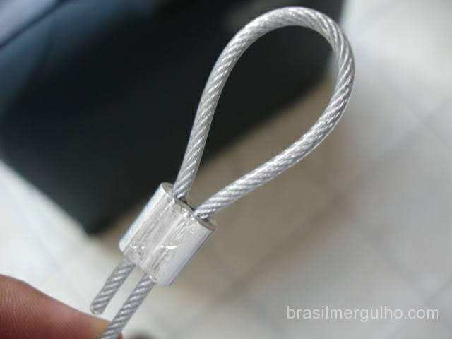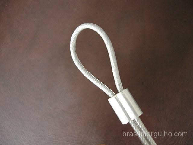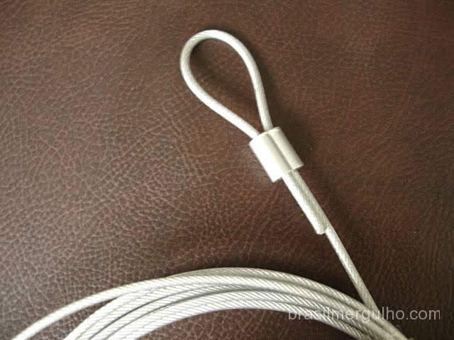 - Pegue um dos prensa cabos, passe o cabo de aço, faça a curva e introduza-o novamente no prensa cabos como na foto ao lado;