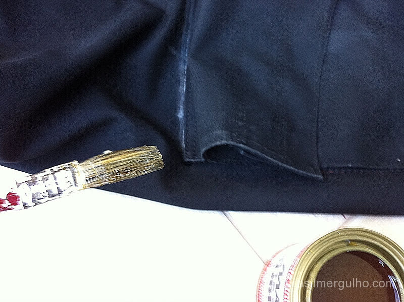 4) Com um pincel, passe a cola no local desejado, tomando cuidado para não deixar grandes excessos de cola. Isso poderá dificultar a colagem do bolso na roupa.