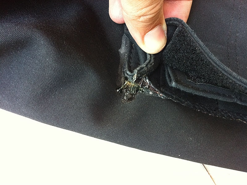 No caso dos bolsos colados nas roupas, esses, tendem a se soltarem da roupa com o passar do tempo, devido ao enfraquecimento da cola e a maleabilidade da roupa, permitindo que o bolso comece a ficar cada vez mais solto, prejudicando a natação do mergulhador e possibilitando até a perda de algum objeto que esteja dentro do bolso em si, sendo preciso, colar as áreas que venham a se soltar.
