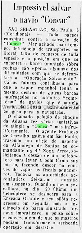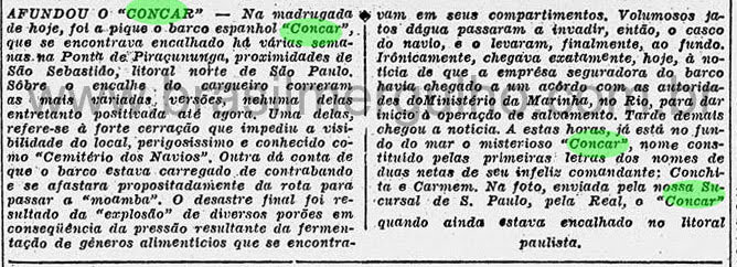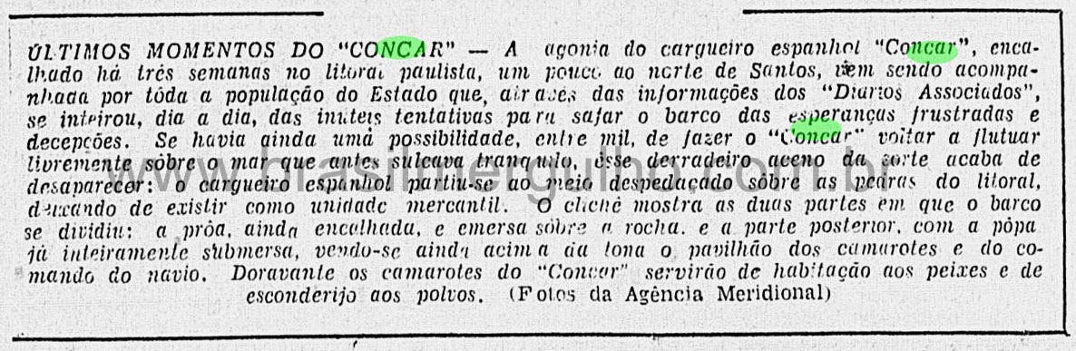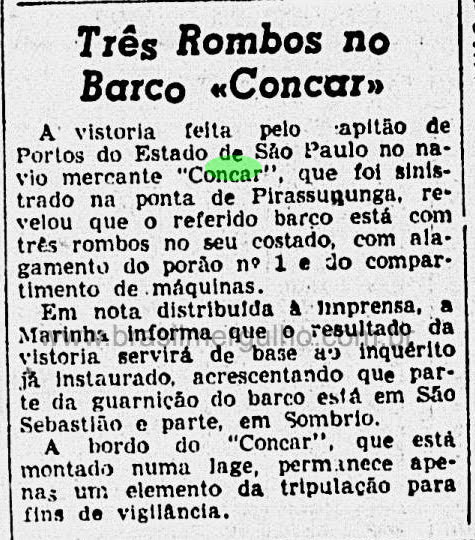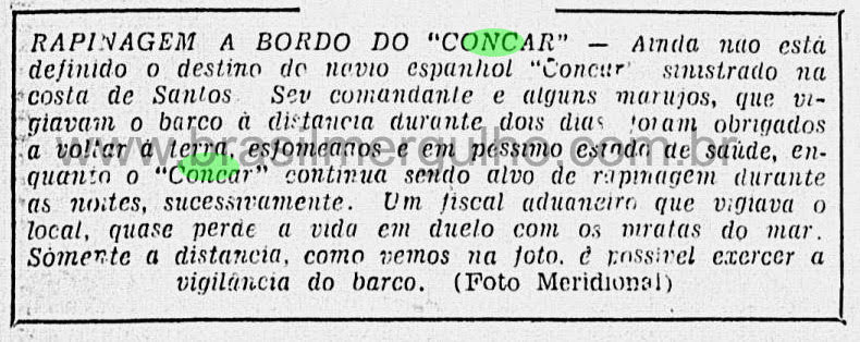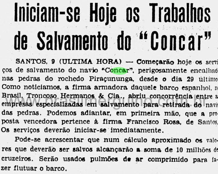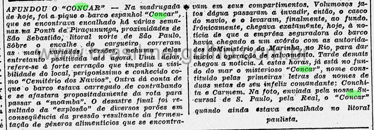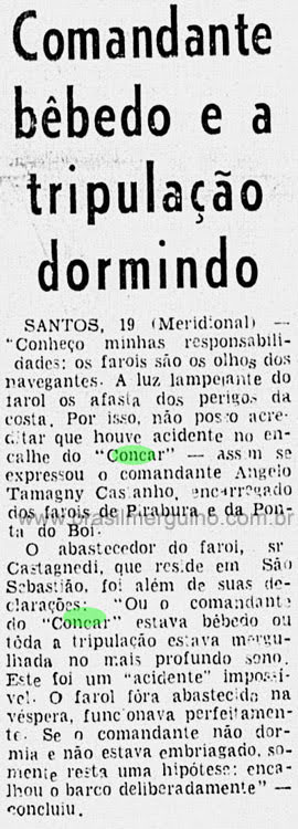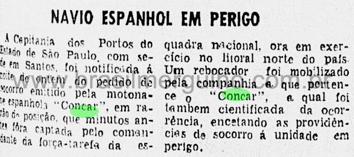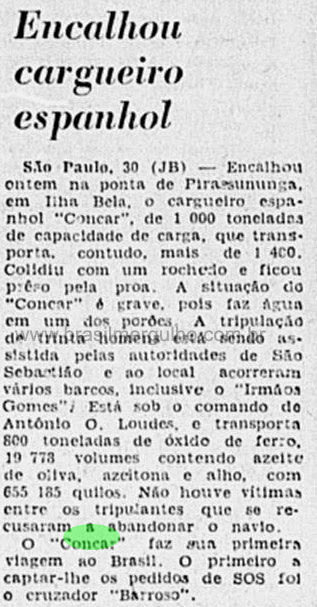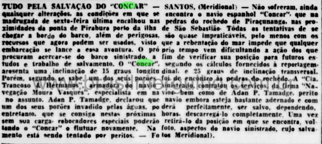 Notas: Fazendo a sua primeira viagem na rota Málaga – Assunção. Acredita-se que o acidente ocorrera por erro de navegação, pois o mar estava calmo e o navio navegava em velocidade de cruzeiro. Uma das testemunhas chega à dizer que possivelmente o comandante estaria bêbado.