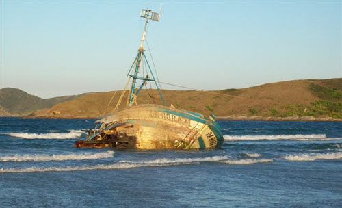 No desespero do desastre, a tripulação optou em encalhar o barco na Praia do Peró para salvar os equipamentos eletrônicos. Realmente, como o calado do barco eram de 5m, o barco assentou-se aos 6m de profundidade.