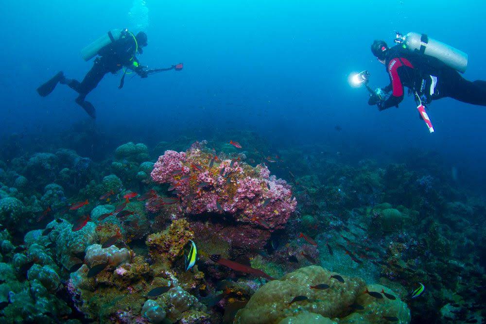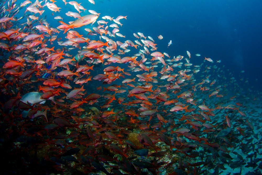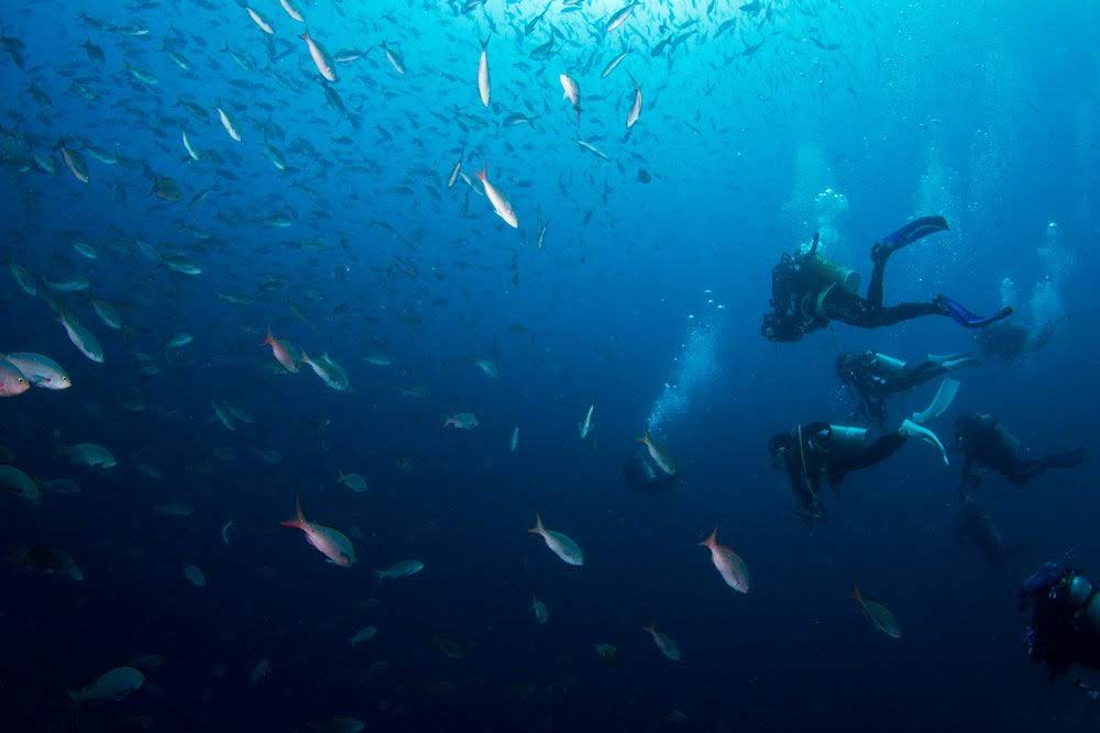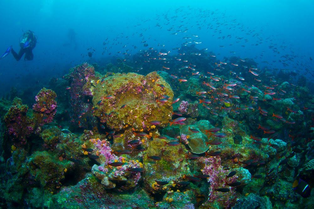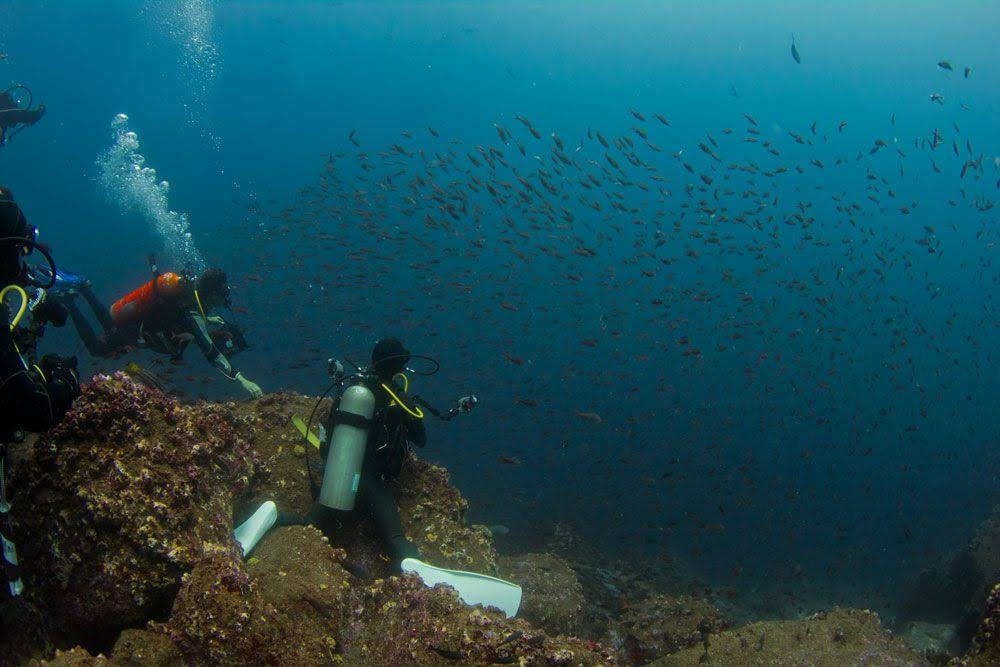 Talvez em razão da distância e com visitação menor de turistas, na Ilha e no Arco de Darwin encontramos uma imensa quantidade de vida marinha, e a incidência de uma corrente com temperaturas mais elevadas, tornando o mergulho ainda mais bonito e confortável.