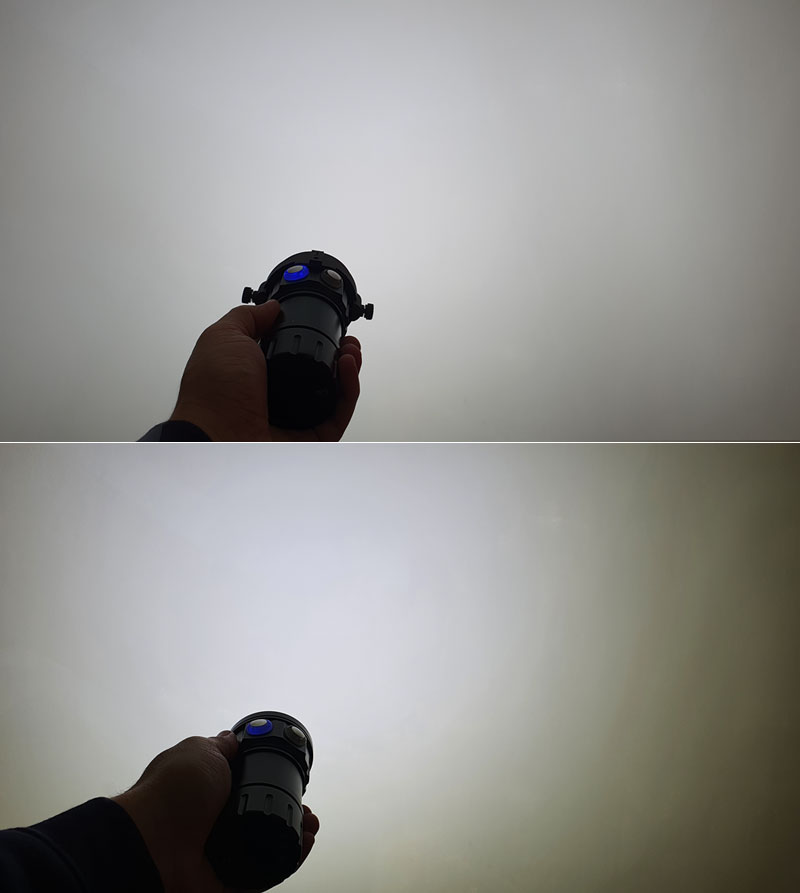 Para solucionar este problema, surgiram os difusores de luz, que permite ao mergulhador criar a difusão da luz emitida pelos spots, tornando a luz emitida difusa. A luz fica mais tênue e regular, mantendo a dispersão luz mais homogênea.