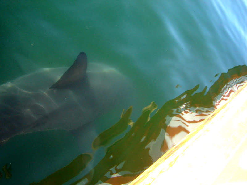 A água não tinha uma das melhores visibilidades (para nossos amigos que estão acostumados as águas caribenhas e de Noronha), mas em segundos vi aquele “bico” enorme passando rente a janela da gaiola, os olhos escuros seguido de um corpo metade cinza metade branco balançando ao final uma nadadeira de fazer inveja a qualquer sistema de propulsão conhecido.