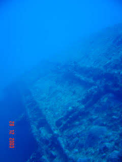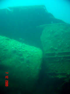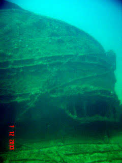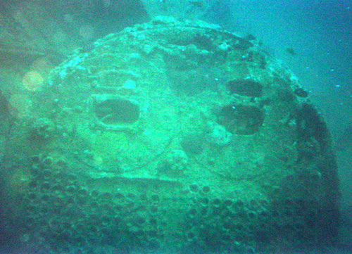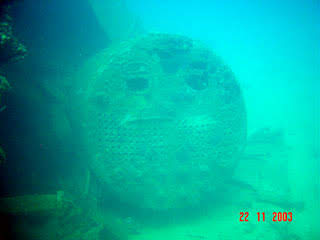 Esse naufrágio é uma embarcação antiga, década de 30, julgando pelo seu estilo de construção. Podemos encontrar entre os destroços uma velha caldeira.
