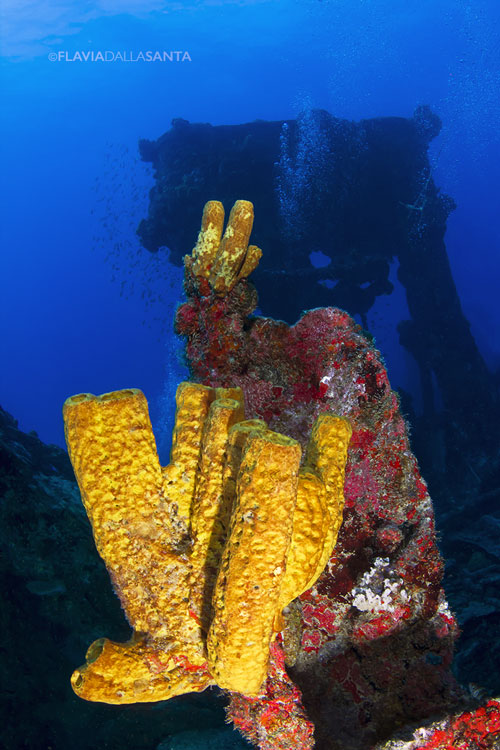 A expedição para o Naufrágio São Luiz, por exemplo, demandou 12 horas entre navegação nas águas agitadas do Rio Grande do Norte e mergulhos. Saímos da marina às 3hs da manhã para fazer às 7hs o primeiro mergulho naquele lindo gigante de ferro adormecido. É um naufrágio belíssimo, muito colorido, totalmente coberto por esponjas e corais, e repleto de vida. Tanta beleza com certeza compensou o desgaste da longa travessia em mar aberto.