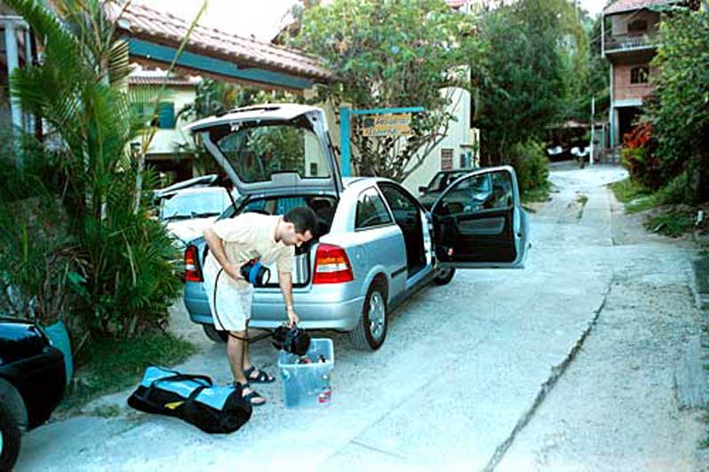 Sabemos que não é incomum um mergulhador parar seu veículo na porta da residência de outro mergulhador, e ficar esperando que este outro desça ou esteja guardando seus equipamentos no porta-malas ou na caçamba do veículo.