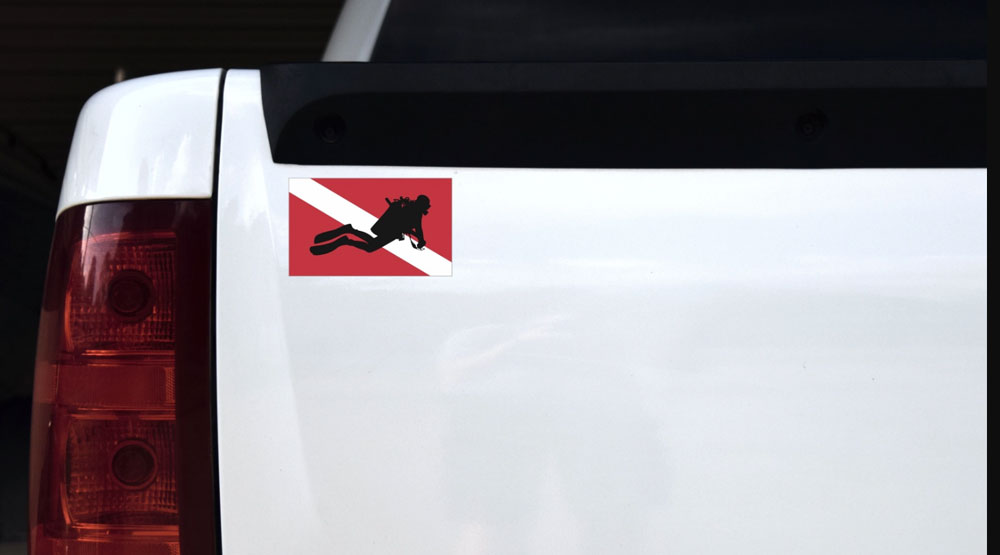 Evite o uso de adesivos de bandeira de mergulho em seu veículo. No passado era legal saber que havia um mergulhador nas proximidades, hoje, isso é um risco desnecessário e não é bom ficar por aí, indicando pra todo mundo que você é mergulhador.