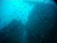 Muita vida marinha habita o naufrágio: tartarugas, arraia de fogo, cardumes de galos, xilas e sardinhas, são tão densos que as vezes até atrapalhava a precária visibilidade.