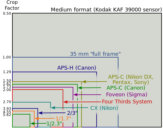 Veja abaixo um diagrama com as diferenças de tamanhos entre os sensores mais comuns no mercado: