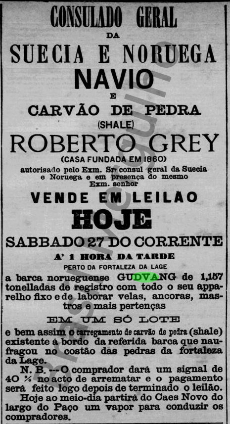 Notas: Saiu de Sidnei para o Rio de Janeiro. Casco de madeira.