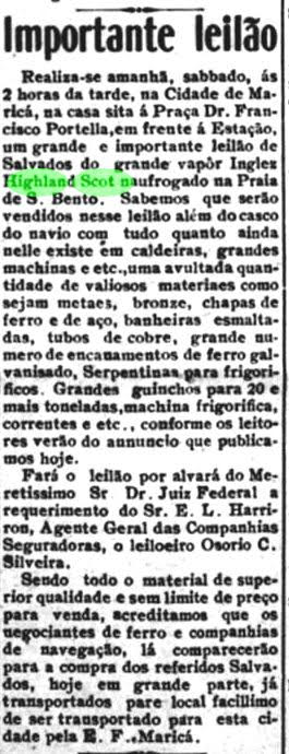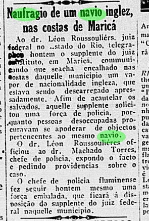 Notas: 7 passageiros a bordo / 1 hélice. Naufrágio identificado por Paulo Tessarollo.