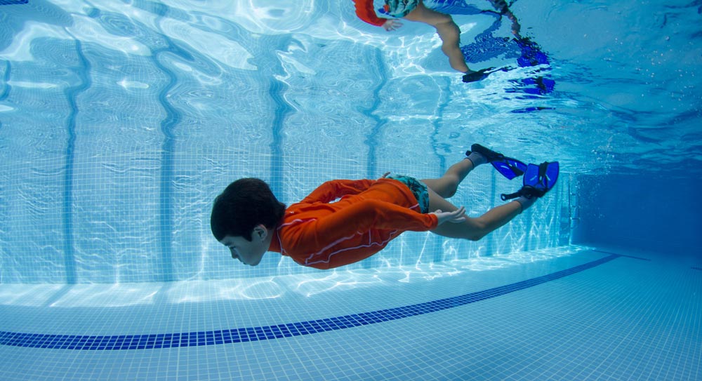Como o uso da máscara e snorkel são os pontos mais delicados para apresentar a criança, a primeira coisa que fiz, foi colocá-lo para nadar utilizando apenas as nadadeiras.