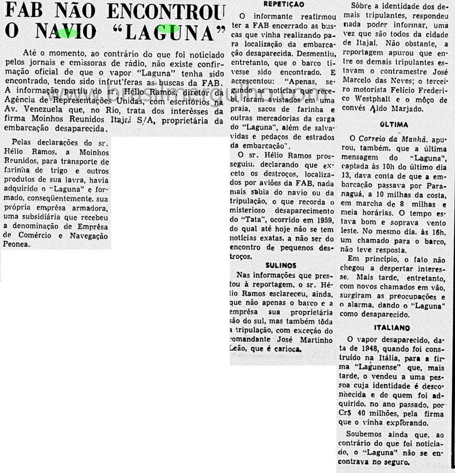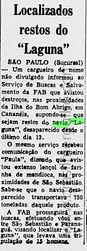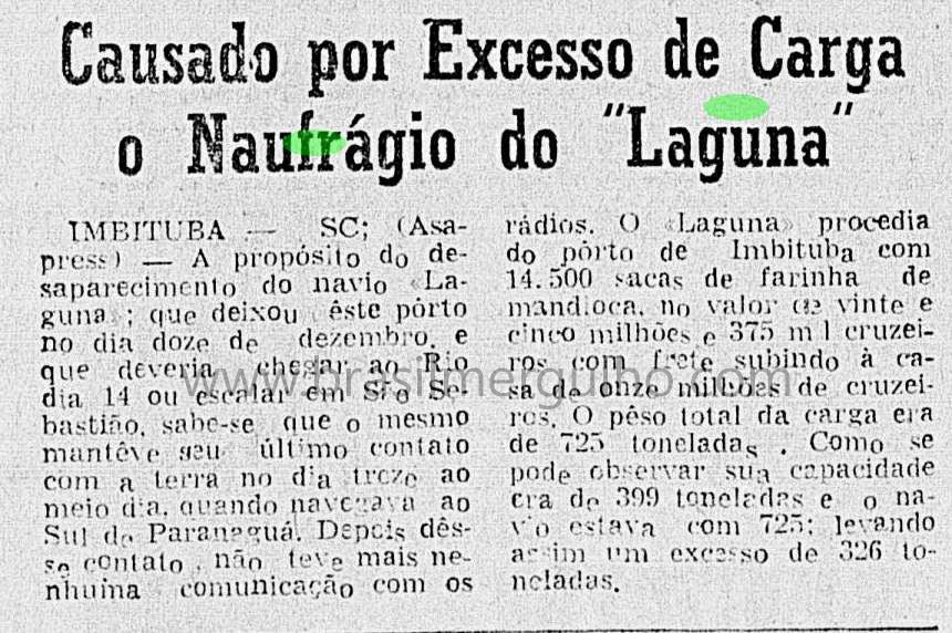 Notas: Saiu de Imbituba para o Rio de Janeiro.