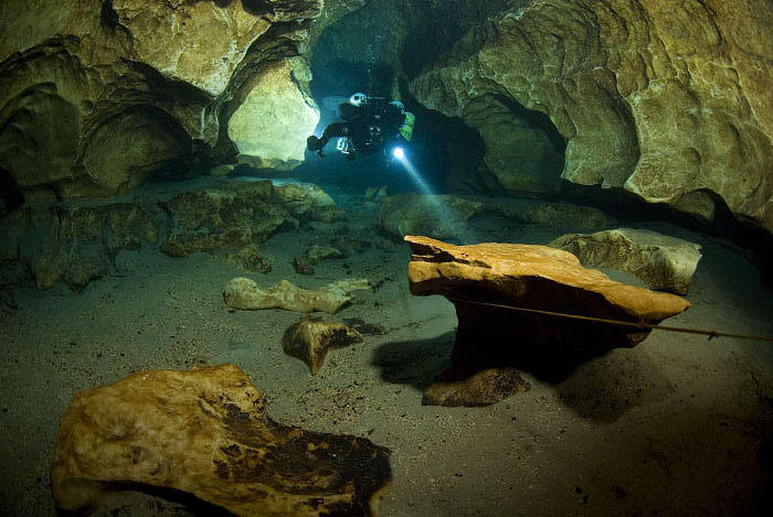 Há um cabeamento destinado aos mergulhadores de caverna, no entanto, é uma caverna destinada aos mergulhadores de caverna com boa experiência, caso tenham a intenção de visitá-la sem um guia local.