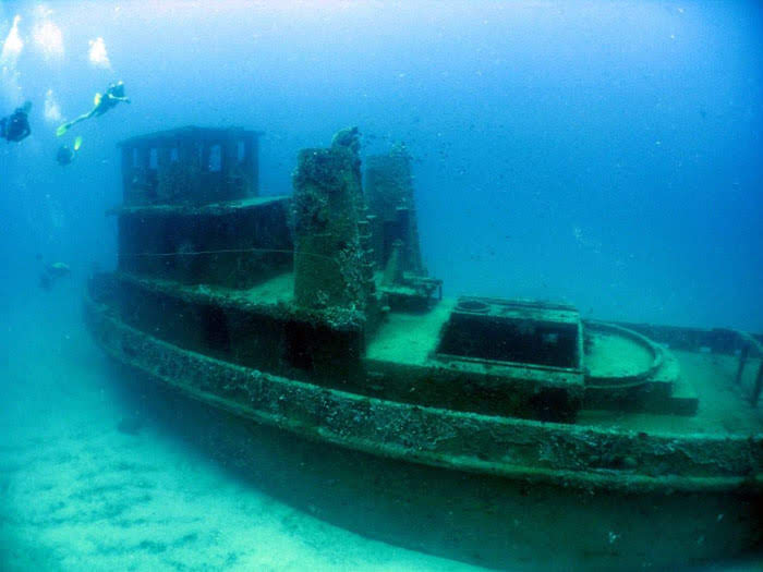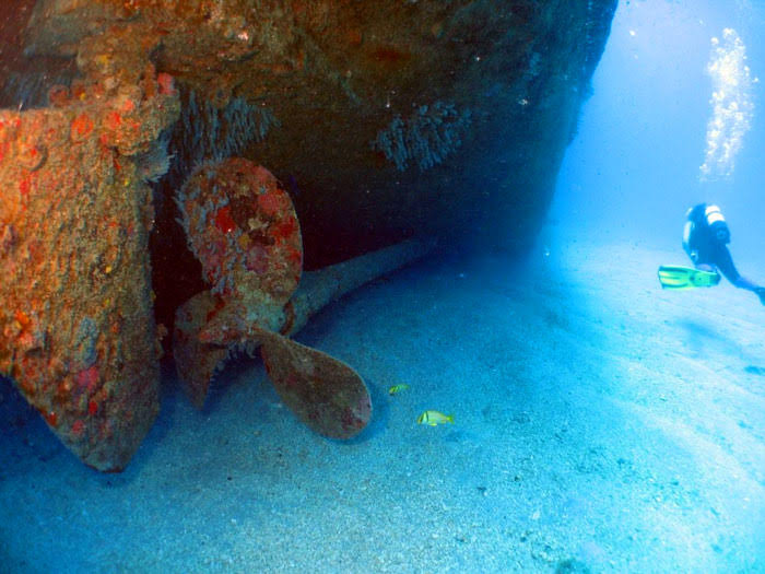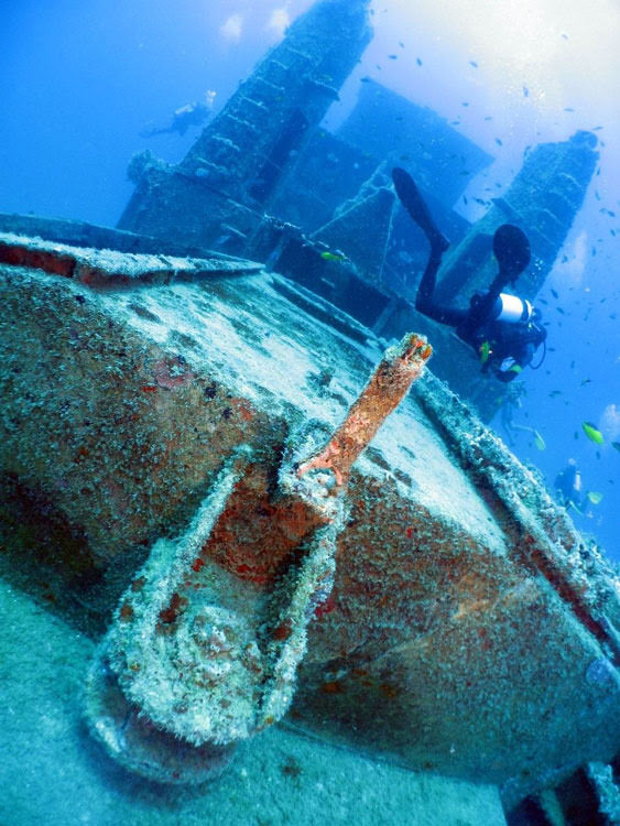 Notas: Proa para 240º graus. Um excelente naufrágio artificial, com várias possibilidade de penetração para mergulhadores avançados.