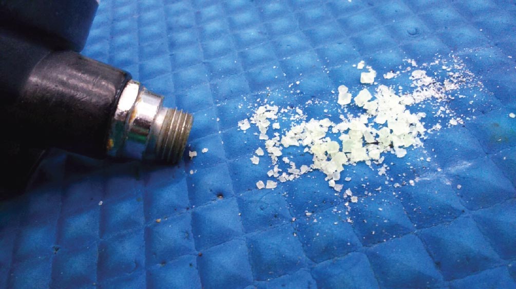 O sol aquece a mangueira e ao mesmo tempo, o fluxo de gás respiratório ao passar pela mangueira, acaba esfriando a superfície interna novamente. Esse processo se repete a cada mergulho, e os “cristais” vão sendo acumulados ao longo do tempo, e com isso, podem se tornar suficientes a ponto de diminuir o fluxo de gás ou até serem levados para o interior do segundo estágio do regulador resultando na falha do principal equipamento de respiração do mergulhador.