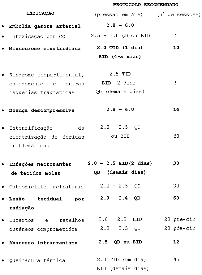 (Aprovadas pela Undersea and Hyperbaric Medical Society-1996)