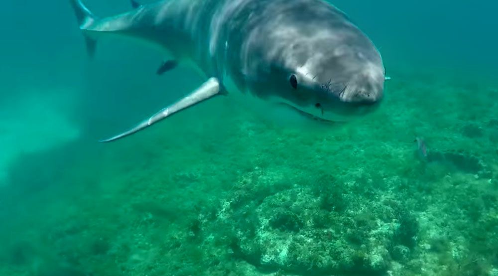 Mergulhador é surpreendido por tubarão branco