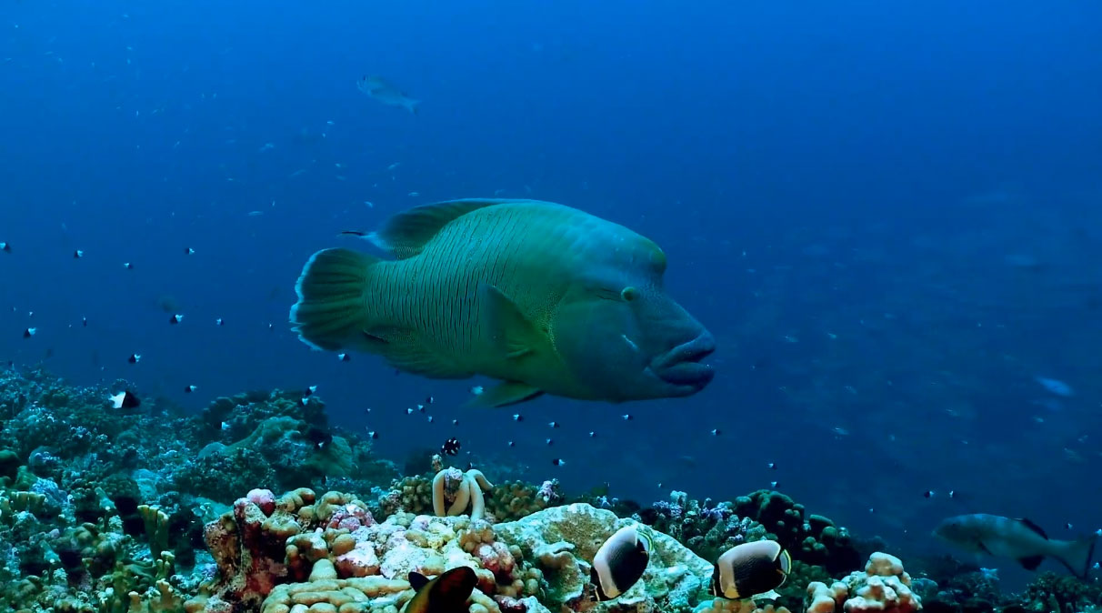 Existem inúmeros túneis e desfiladeiros para explorar com uma seleção diversificada de vida marinha. Três tipos de tubarões visitam regularmente este local, incluindo tubarão-galha-preta, tubarões cinzentos grandes e os famosos tubarões-limão gigantes. Você também verá outros peixes coloridos e os enormes peixe-napoleão.