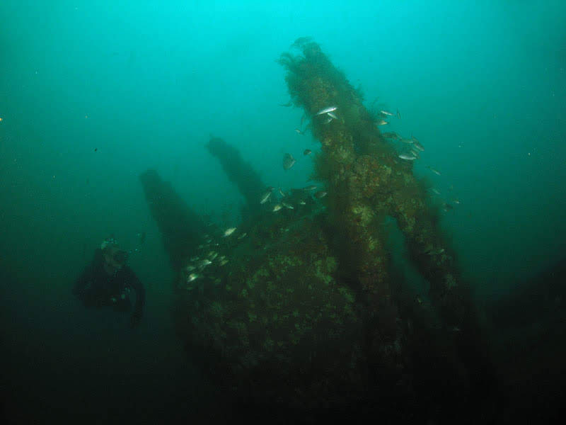 Nosso primeiro ponto foi o naufrágio do “Spar”, um quebra-gelo da guarda costeira aposentado, naufragado artificialmente no ano de 1997.