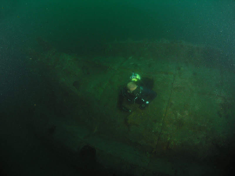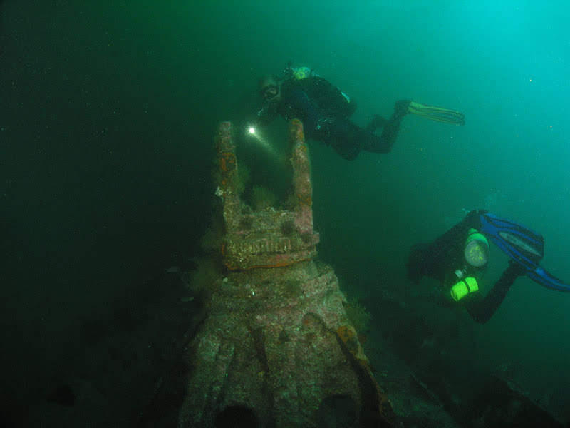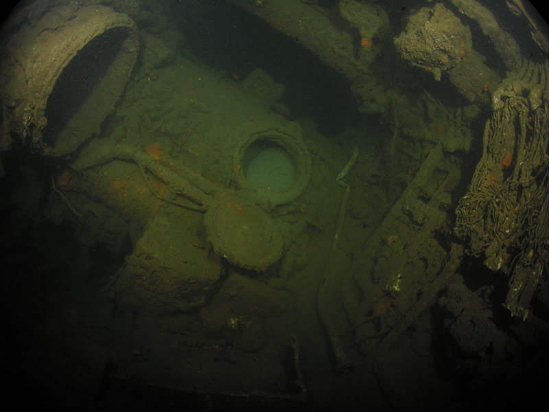 Retornamos rapidamente ao ponto de entrada e saímos pela mesma abertura. Já do lado de fora, completamos o mergulho em direção à proa, passando por mais uma entrada por onde se carregavam os torpedos para, finalmente, chegar à proa, bastante desmantelada, mas com o imponente tubo de torpedo de bombordo facilmente identificável.