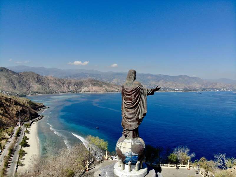 Em nosso terceiro dia de mergulho, saímos de barco para o Cristo Rei de Dili, que fica a apenas 20 minutos da área central de Dili, onde o barco fica ancorado. Cristo Rei de Dili é a estátua ícone da cidade, situada na extremidade da península de Fatucama. Hoje em dia, é uma das principais atrações turísticas da cidade.