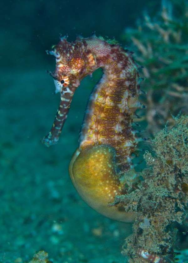 Vimos cavalos marinhos, Leaf Scorpionfish, Orangutan Crabs, Cowries, Cockatoo Waspfish, muitos camarões e nudibrânquios.