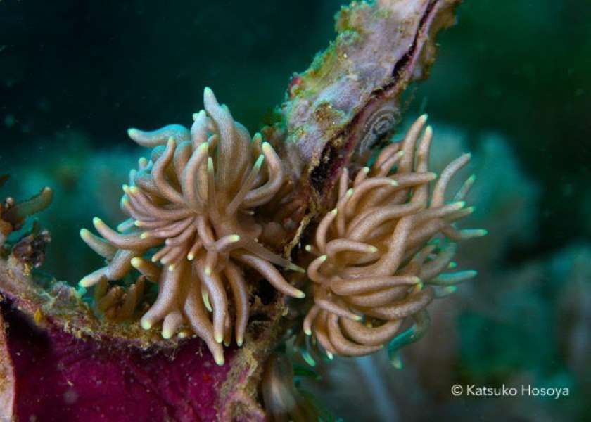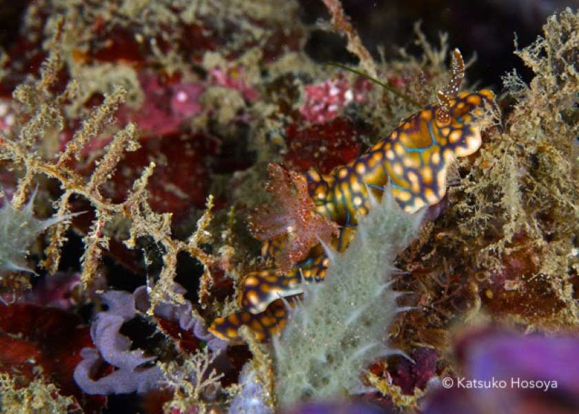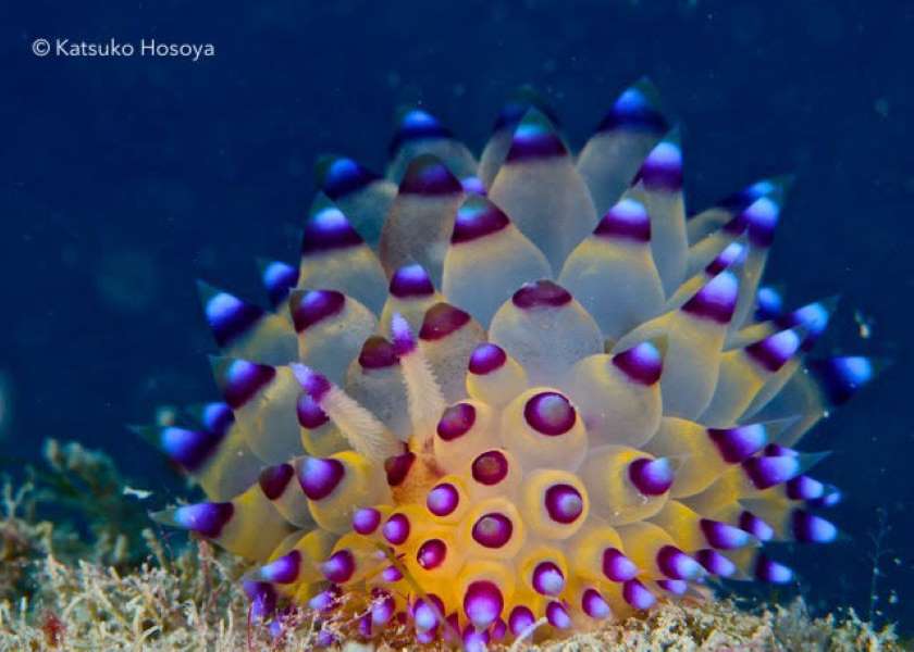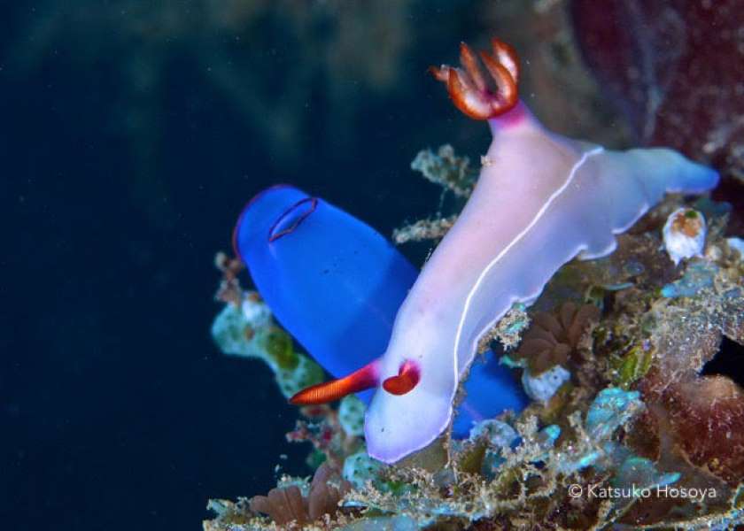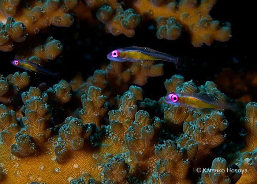 A Katsuko tirou essa foto maravilhosa de um Signalfin Sandgoby rodeado por pequenas flores. Essa foto demonstra claramente o estilo fotográfico de Katsuko.
