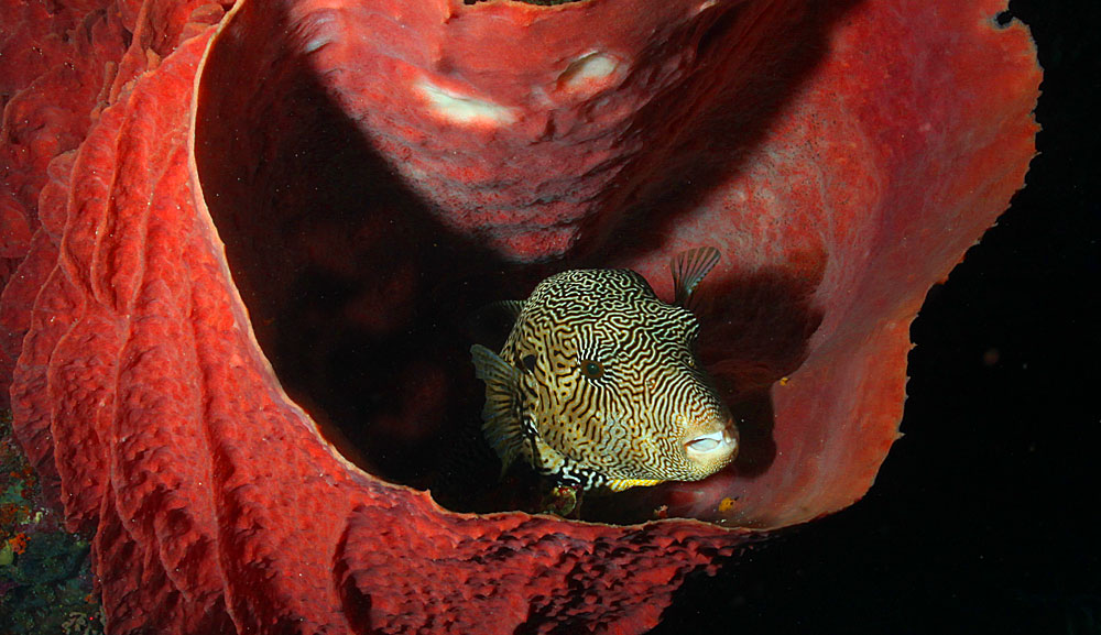 Os mergulhos noturnos também são emocionantes, e nos deparamos com os raros e famosos camarões louva-a-deus, enguias, caranguejos esponja gigantes, baiacu e porco-espinho adormecidos, além de camarões e caranguejos de todos os tipos.