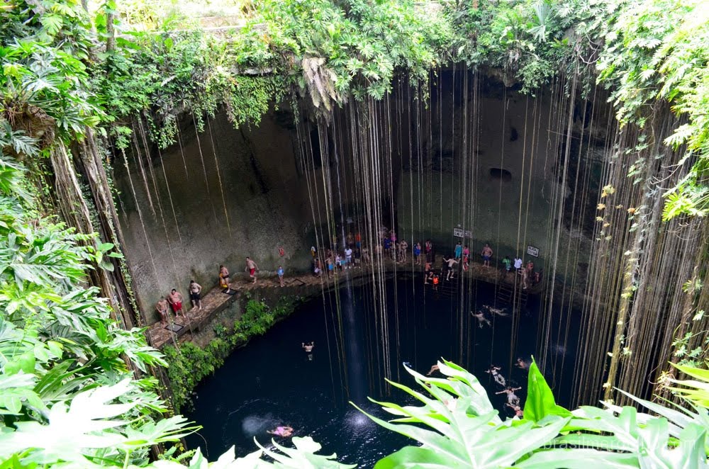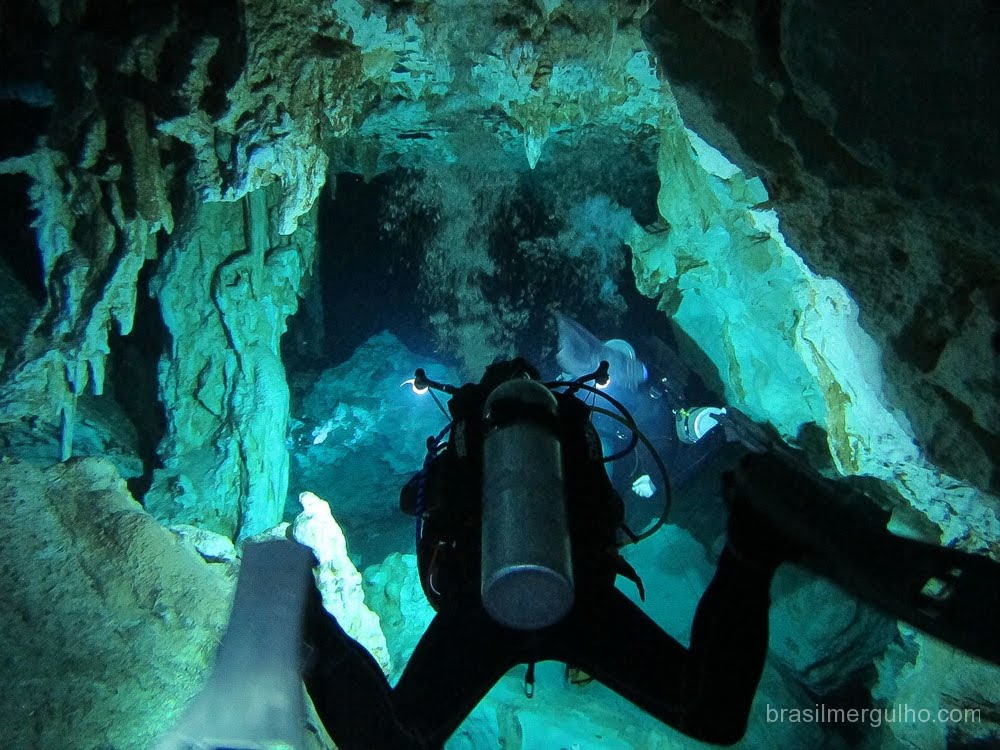 Além disso, Em Playa é possível pegar uma van (chamadas de “colectivo”) para Tulum e mergulhar nos fantásticos Cenotes da região. Cenotes, para quem nunca ouviu falar, são buracos no meio das rochas, por onde passam rios subterrâneos e dependendo a profundidade, pode-se encontrar água doce e/ou água salgada. Existem dezenas de cenotes diferentes para todos os tipos de certificação de mergulho, porém recomendo que procure uma operadora séria com guias certificados. Um pacote de 4 dias (2 cilindros por dia) em cenotes diferentes custa US$ 560 por pessoa – inclui transfer de Tulum aos cenotes, lanche e água. Alguns cenotes ficam em áreas privadas e há cobrança de taxa extra na entrada, mas não é nada absurdo.