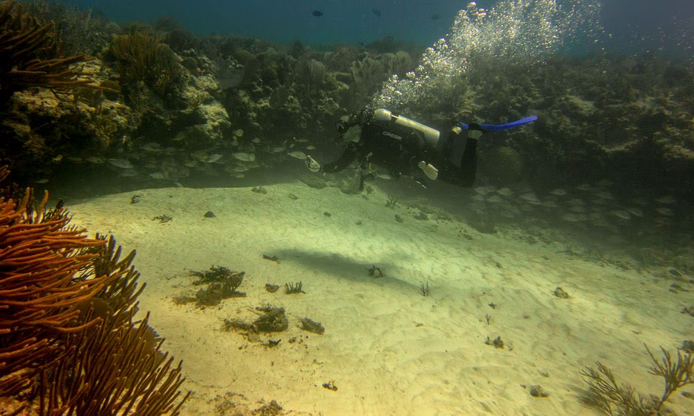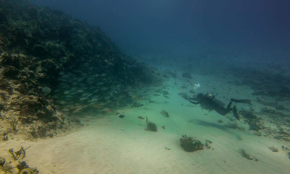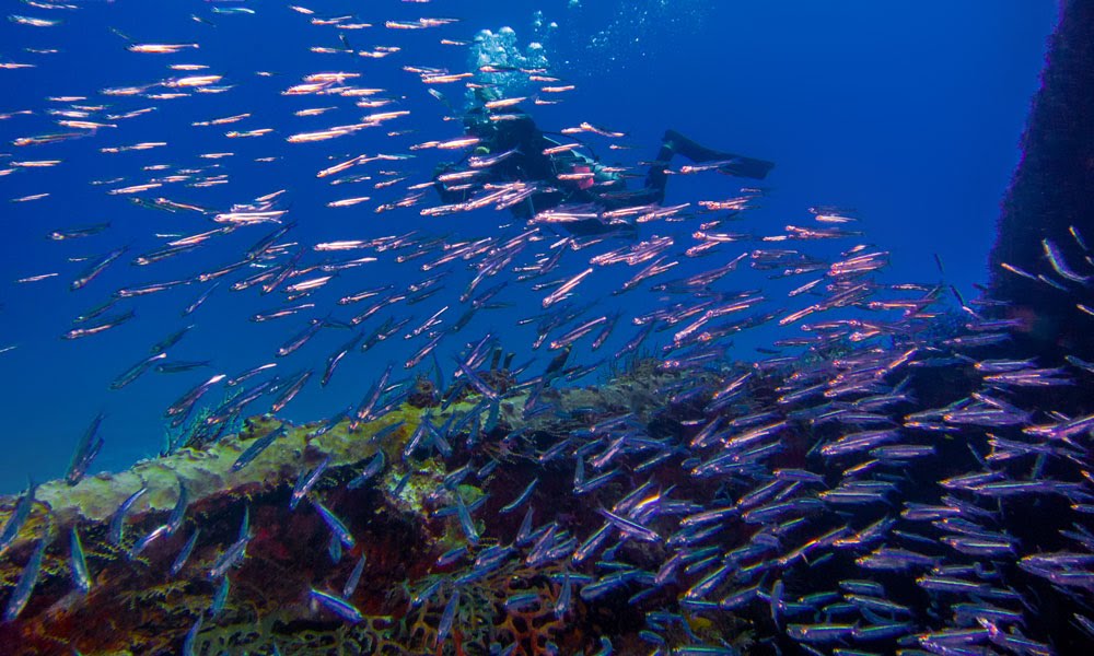 Foi um mergulho extremamente relaxante e maravilhoso, pois a vida marinha local é abundante, com os animais se aproximando dos mergulhadores.