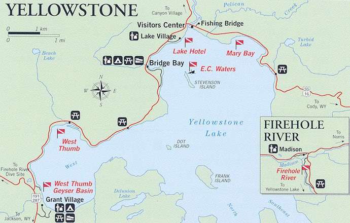 Esta é provavelmente a área favorita para mergulhar em Yellowstone. Embora possa ser facilmente mergulhado a partir da costa, você deve chegar até o local utilizando uma embarcação que saia a partir da Marina Bridge Bay, porque a equipe do parque não vai querer que você saia do calçadão de pedestres.