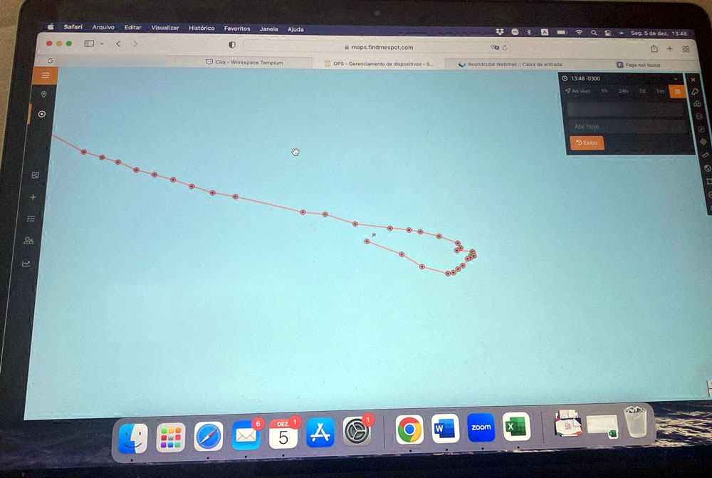 Monitoramento exibindo por onde a embarcação passou e onde se encontra – Foto: Operadora Aquáticos