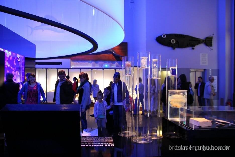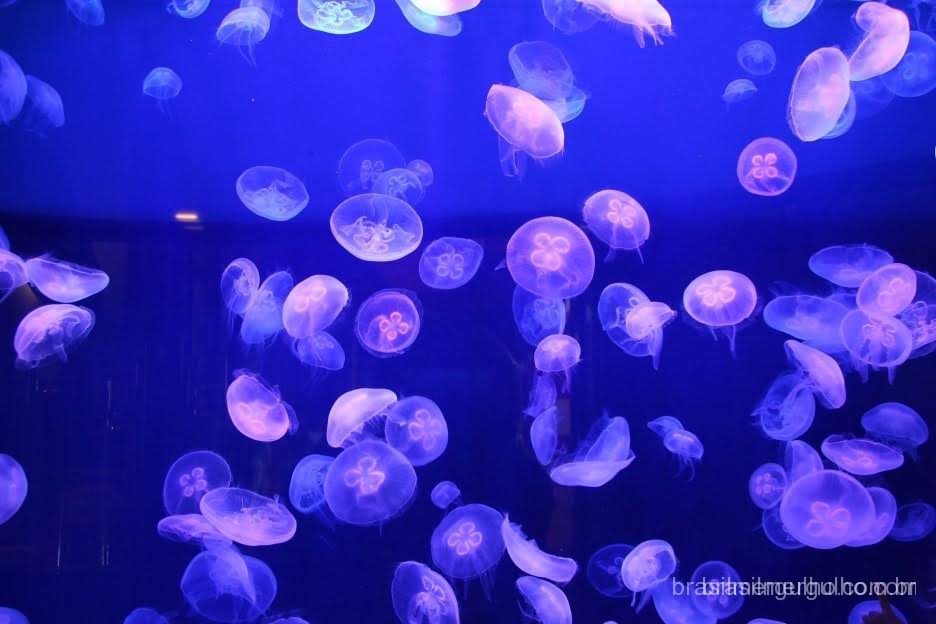 Na ocasião em que estive realizando a visita, havia uma exposição de águas vivas muito interessantes, com um ambiente muito bem decorado, contendo diversos exemplos de espécies, com ilustrações indicando as características de cada uma delas, monitores exibindo fotos e vídeos, além de um grande aquário com dezenas de águas vivas nadando.