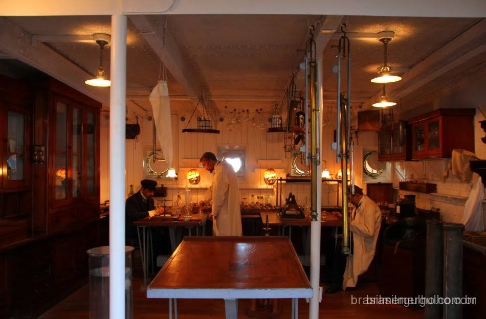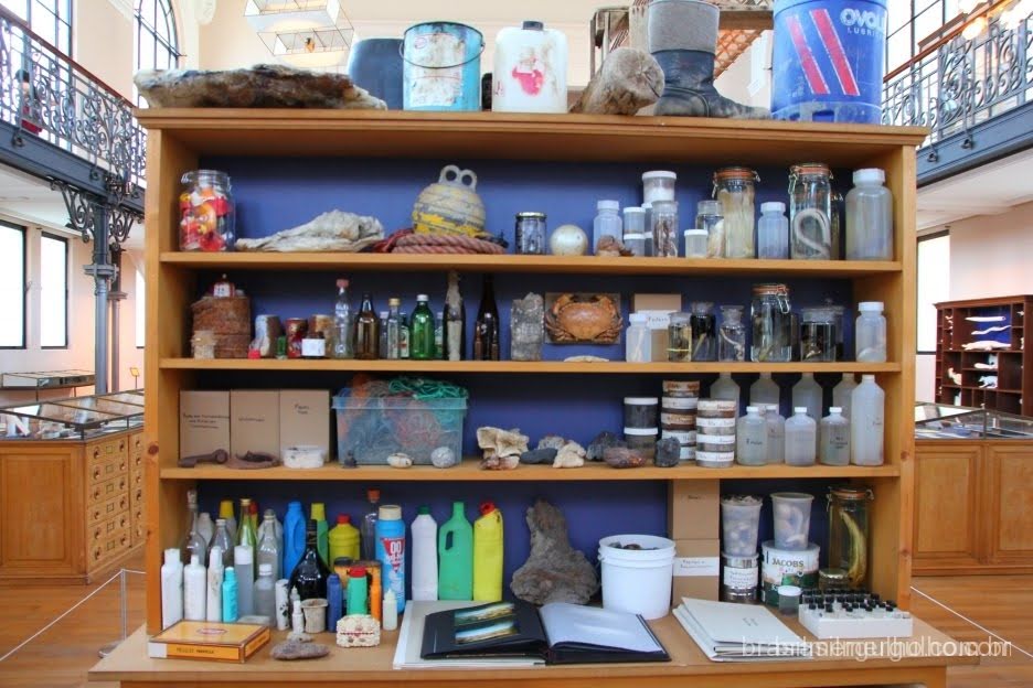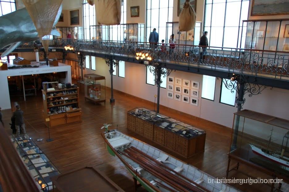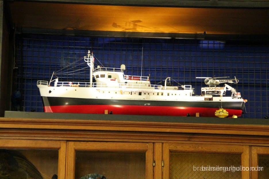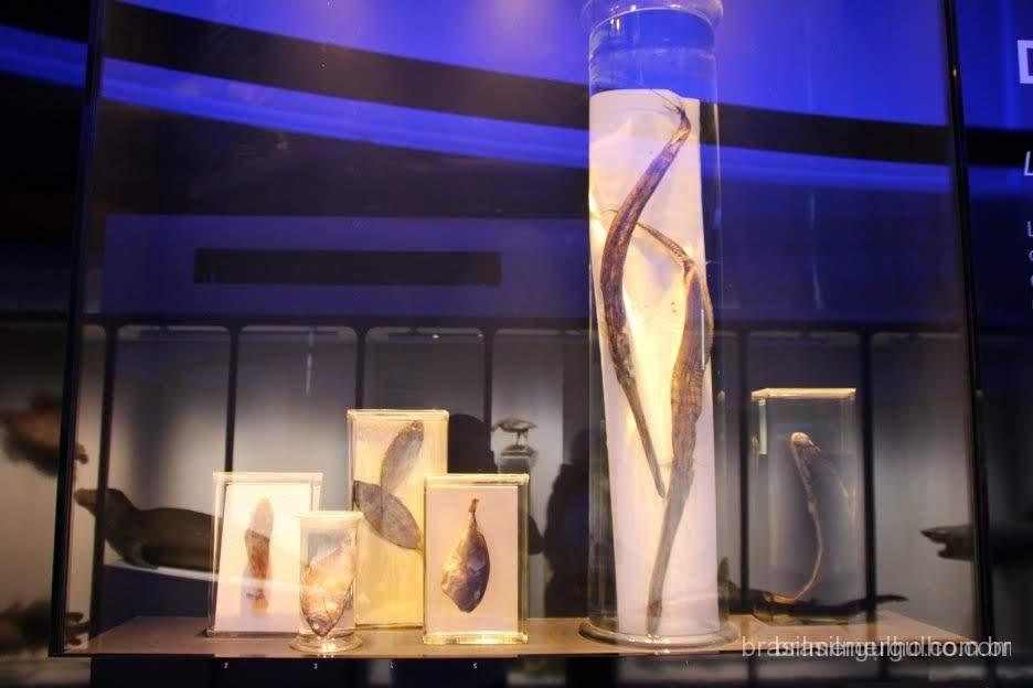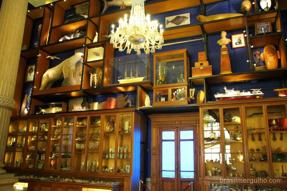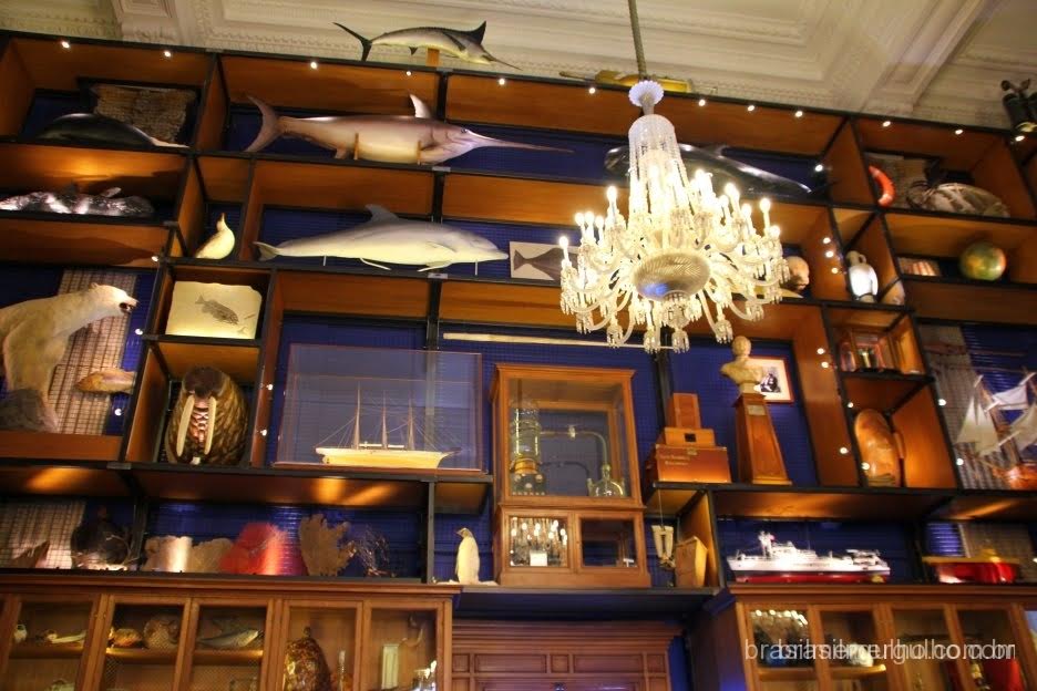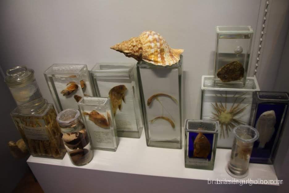 Retornando a entrada, há duas grandes escadas que levam as grandes exposições no segundo andar, que logo ao chegar nele, damos de cara com um imenso “armário” com centenas de exemplares marinhos cedidos pela equipe de Cousteau.