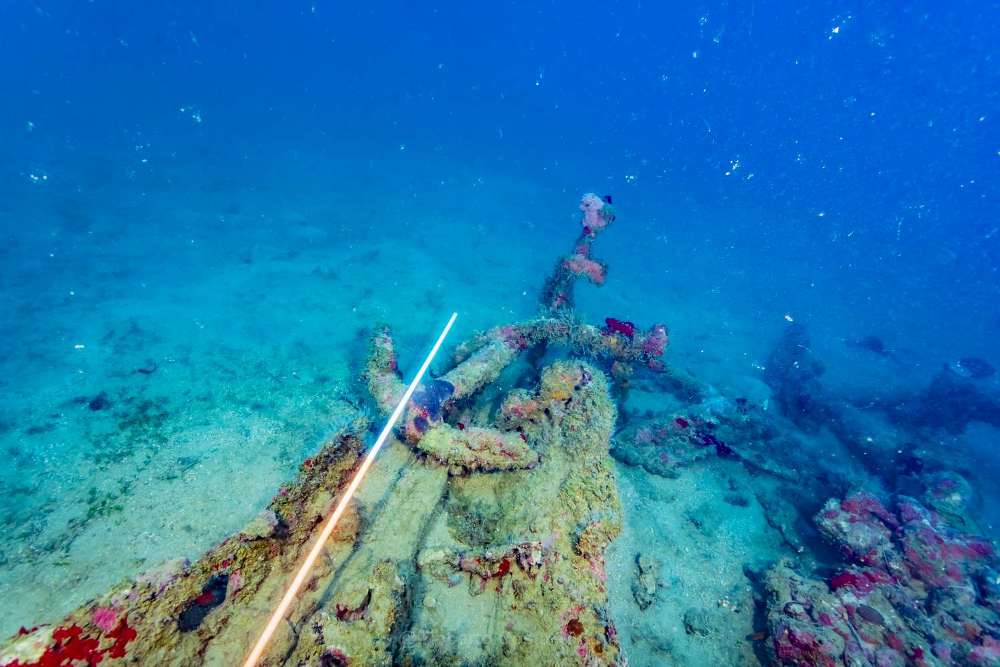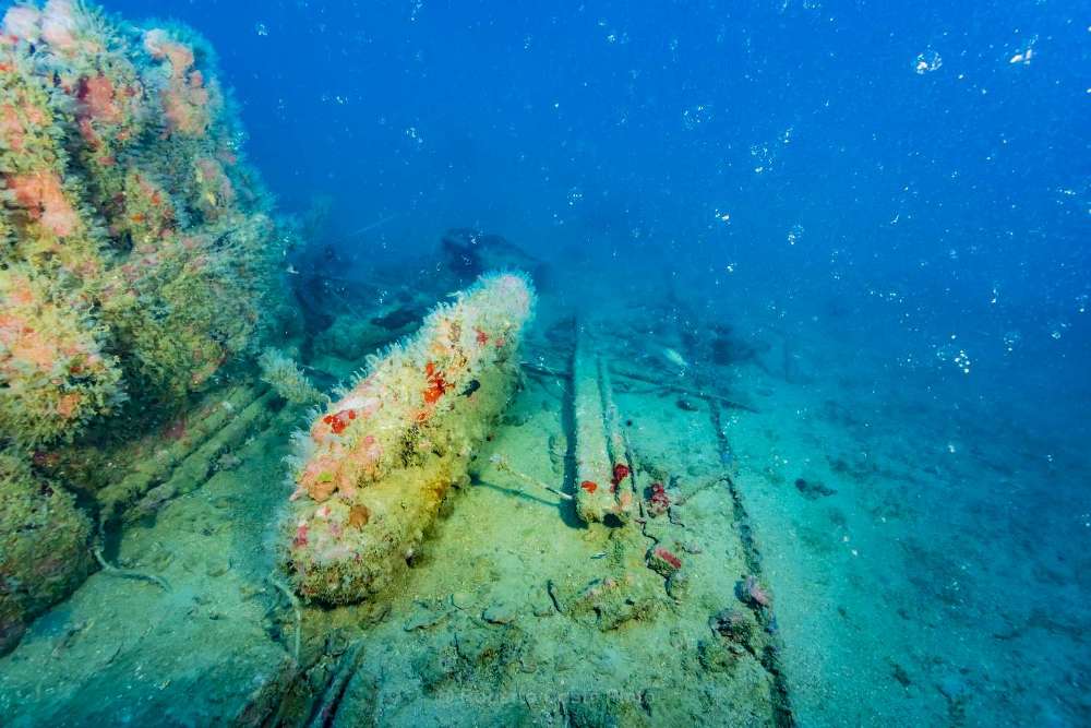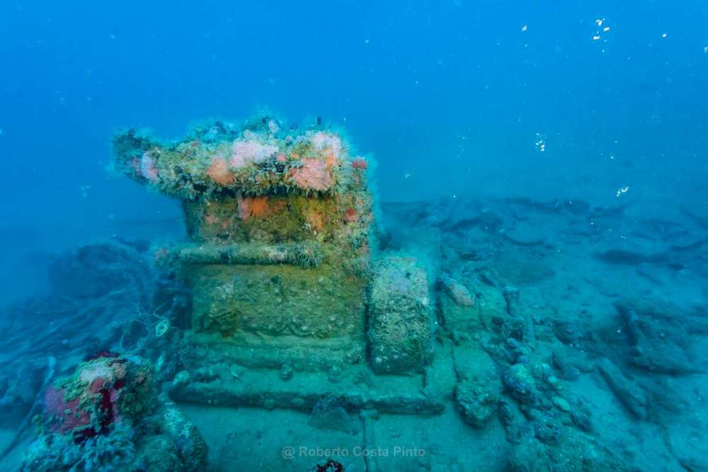 Naquela ocasião, acreditamos que seria o nome do navio ou do fabricante do telégrafo. Mergulhamos de rebreathers com uma água limpa, sem correntes, sendo possível avistar a silhueta antes mesmo de alcançar o naufrágio. O mergulho durou pouco mais de uma hora, possibilitando realizar o vídeo de 2018.