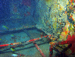 NotasPermite pequenas penetrações em seus porões. O casco está esburacado e a cabine já se desmantelou. O leme encontra-se no lugar e o hélice foi removido. Colaboração: Marcus Davis