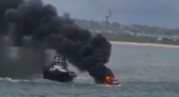 Uma lancha pegou fogo próximo à entrada do Porto do Recife, na manhã do último sábado. O incêndio teria começado por volta das 11h.
