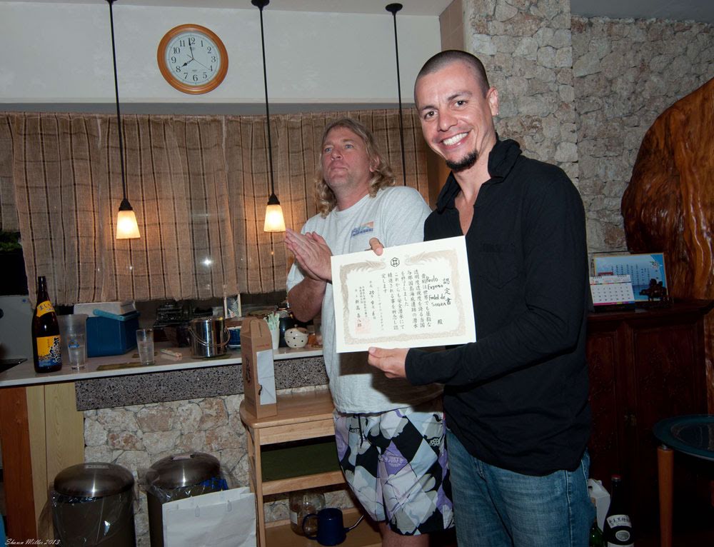 Depois de toda a aventura, ainda estava reservada a noite de despedida de Yonaguni, onde o instituto do Sr. Kimura para incentivar a divulgação e preservação do monumento, nos brindou com um coquetel típico japonês e um certificado pela visita. Esse foi só o começo de uma viagem que uniu aventura, história, lazer e mergulhos pelo mundo.