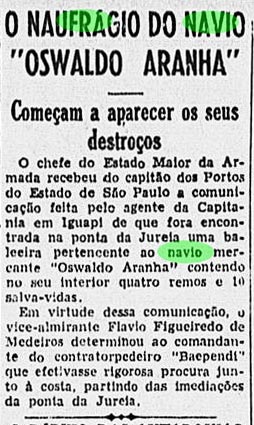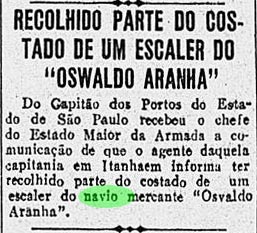 - Pereira Carneiro & Cia Ltda, Rio de Janeiro – SS Oswaldo Aranha – 1930 à 1935;
