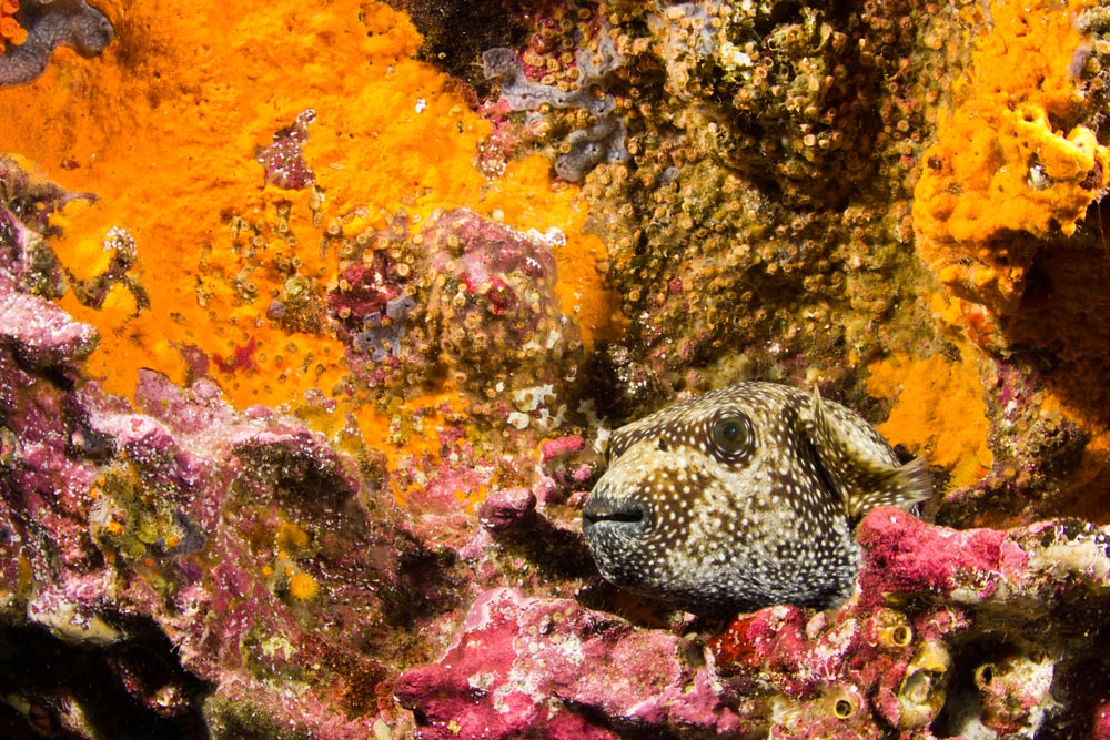 Utilizando uma embarcação do cais, em apenas 10 minutos você poderá chegar num extenso recife rochoso repleto de corais moles coloridos, e entre as rochas, é possível avistar tipos de nudibrânquios (alguns endêmicos da região), polvos, moreias, arraias, lagostas e peixes como o peixe anjo-rei e pequenas garoupas.