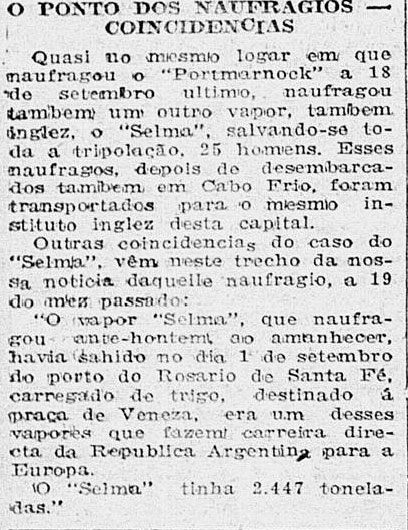Notas: Encalhou quando viajava de Rosário de Santa Fé.