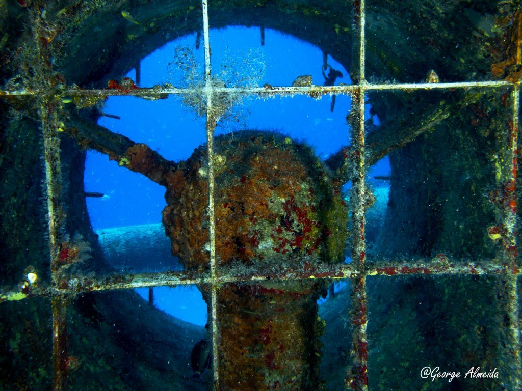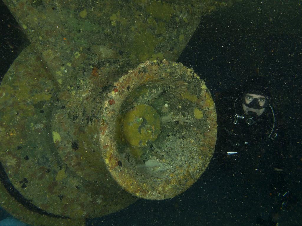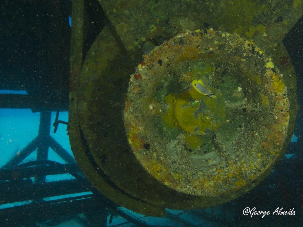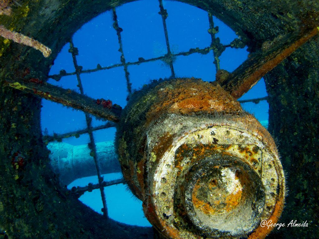 Lá dentro foi possível identificar um quarto devido ao que restou das camas, banheiros com as privadas no teto ao estilo “Itapagé“. Cilindros de Oxigênio caídos e muitas peças ainda muito instáveis do casario que emborcou e depois foi esmagado quando o naufrágio se chocou contra o leito marinho.